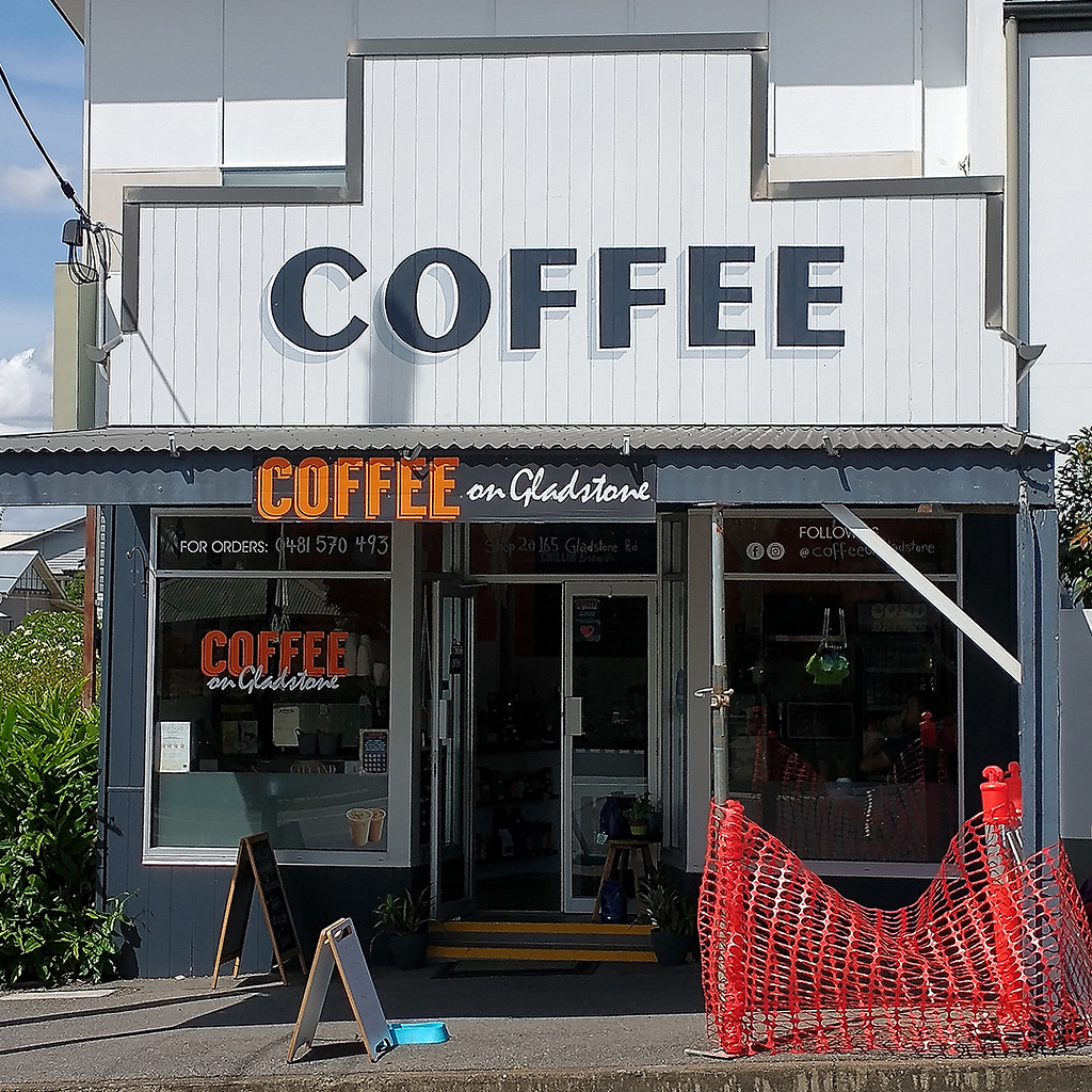 I designed and painted this sign for Coffee on Gladstone in South Brisbane. The building is very old and it features a classic squared-off storefont roof facade so I wanted to create something that complemented this traditional look.